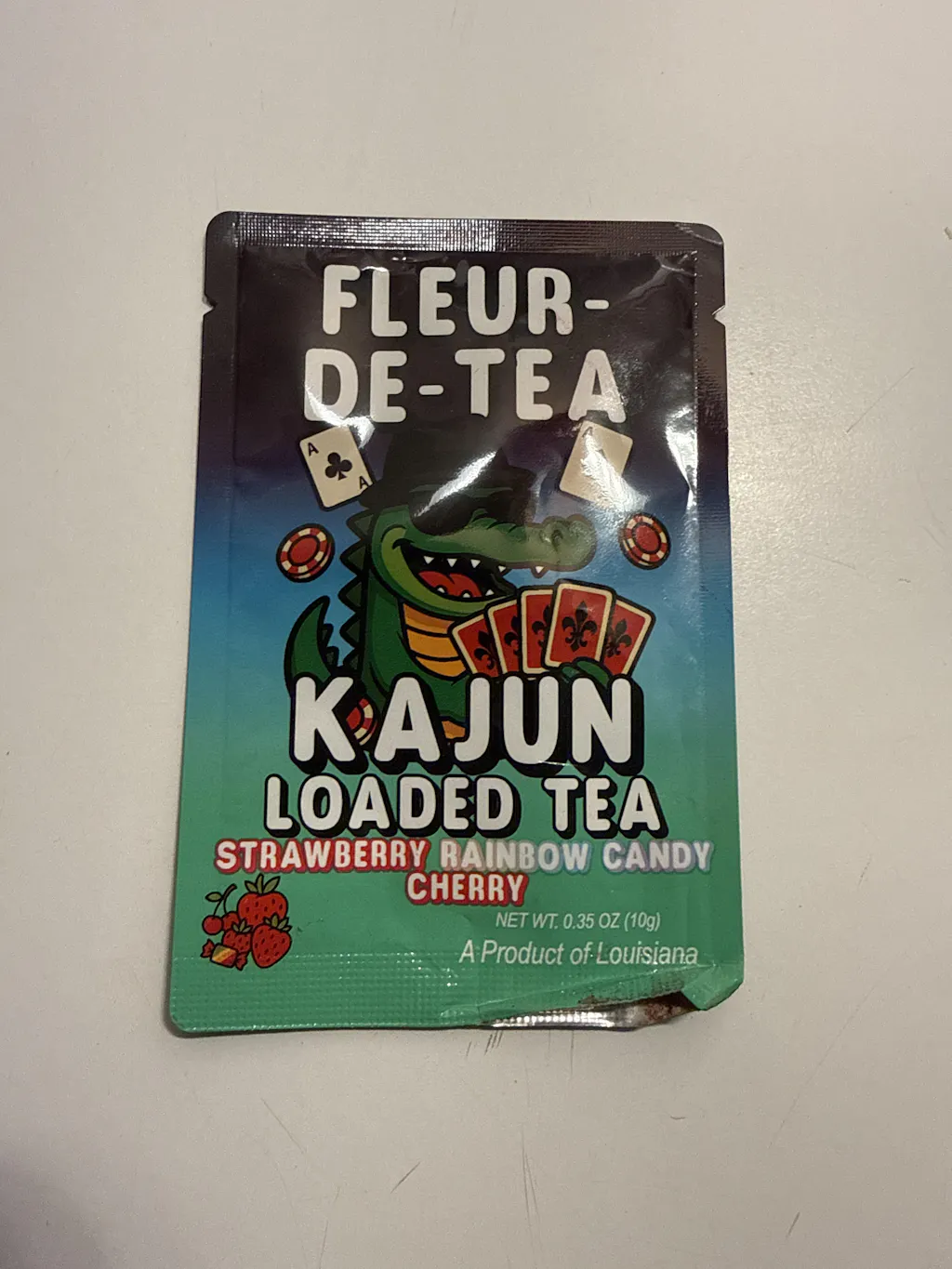 Each packet of Kajun Loaded Tea contains 250 mg of caffeine.